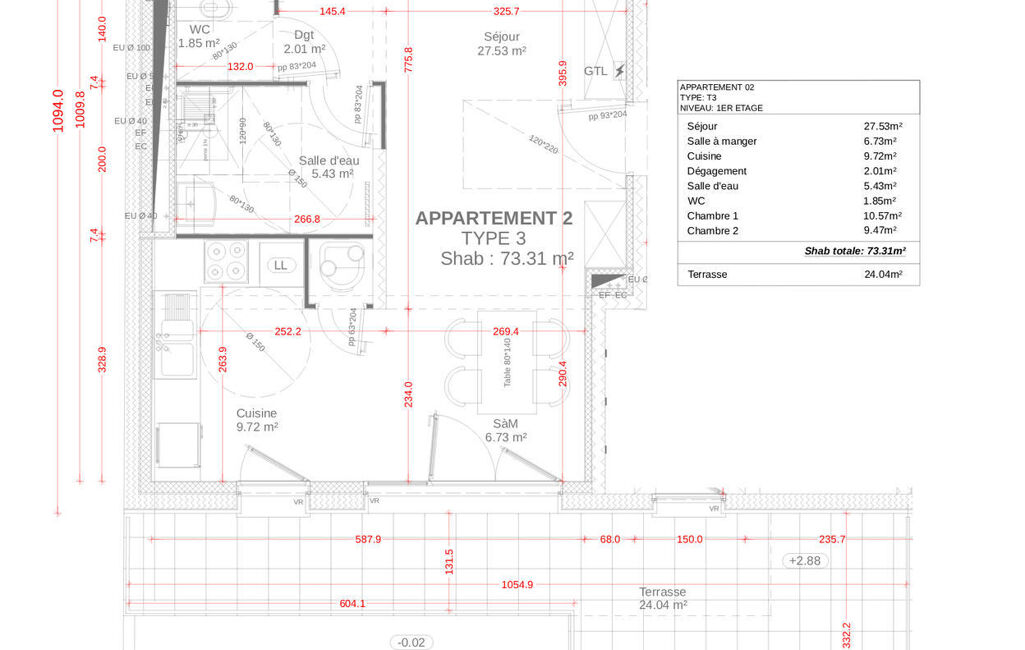 - Surface habitable : 73 m²
