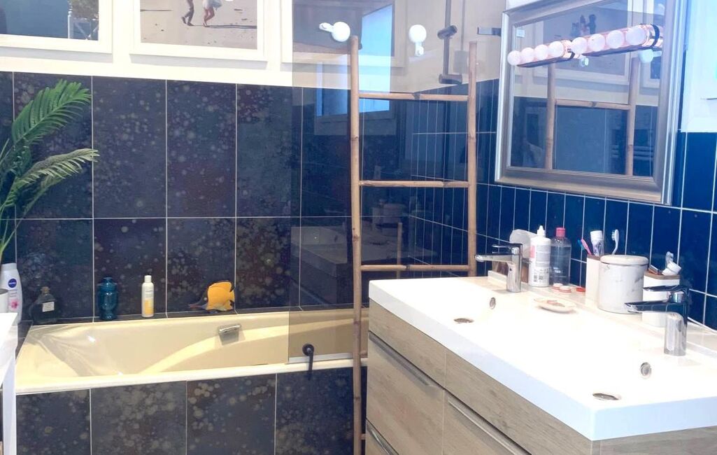 - Une salle de bains avec baignoire, meuble double vasque et wc pour la suite parentale