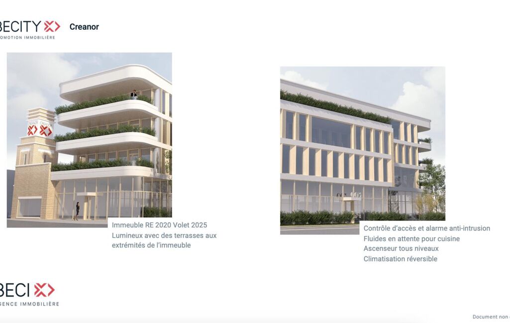 Au parc d'activité CREANOR, route de Bergues, à proximité immédiate de l'autoroute A16, de la gare de Dunkerque et de commerces, un nouvel ensemble de bureaux et de commerces avec 46 places de Parkings en sous sol.
