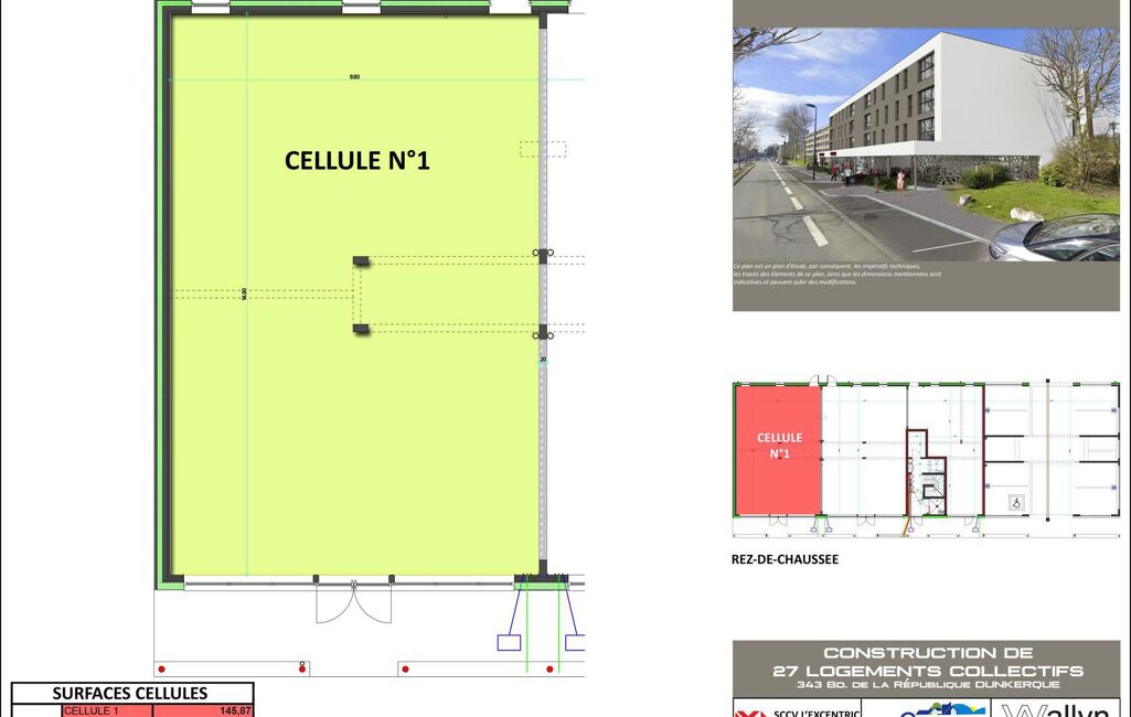 Prix 311 500 euros HT avec 5 places de Parking.