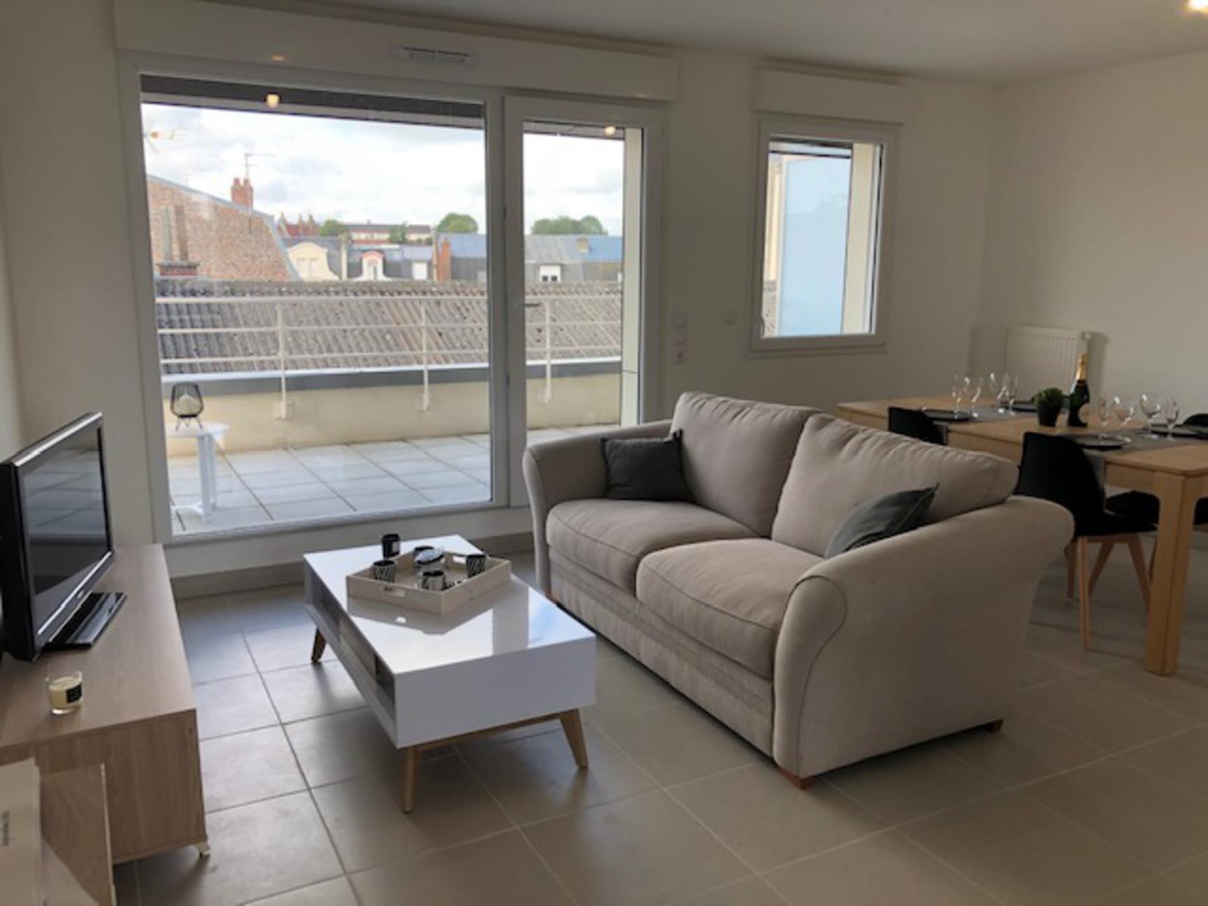 Appartement neuf dans résidence sécurisée avec ascenseur et parking au centre ville. Calme, proche de tous commerces et marché. Produit rare!!